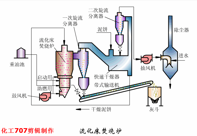流化床焚燒爐 ?其爐體是由多孔分布板組成,在爐膛內(nèi)加入大量石英砂,將石英砂加熱到600度以上,并在爐底股入200度以上的熱風(fēng),是熱砂沸騰起來(lái),再投入垃圾。垃圾同熱砂一起沸騰起來(lái),垃圾很快被干燥,著火,燃燒。未燃盡的垃圾比重交輕,繼續(xù)沸騰燃燒,燃盡的垃圾比重較大,落到爐底,經(jīng)過(guò)水冷卻后,用分選設(shè)備將粗渣,細(xì)渣送到廠外,少量的中等爐渣和石英砂通過(guò)提升設(shè)備送回到垃圾焚燒爐中繼續(xù)使用。