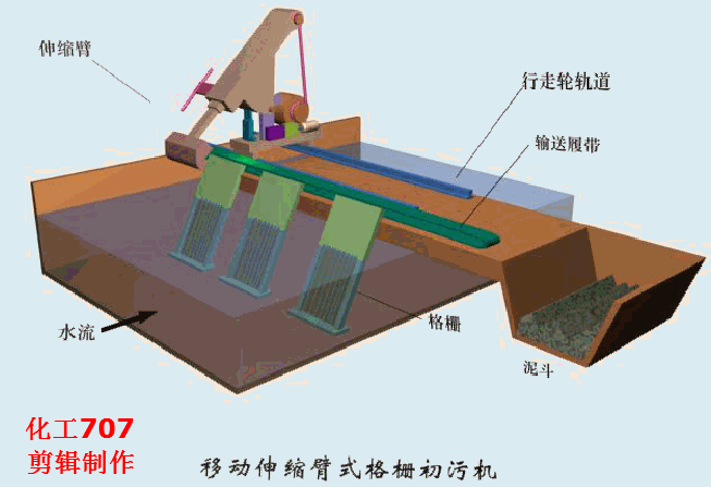 移動(dòng)伸縮臂式格柵除污機(jī) ?使用格柵除污機(jī),一般是為了用其進(jìn)行攔截并清除流體中各種形狀雜物。通過(guò)電機(jī)減速器的驅(qū)動(dòng),設(shè)備上的耙齒鏈就會(huì)朝著逆水流的方向做回轉(zhuǎn)運(yùn)動(dòng)。當(dāng)耙齒鏈運(yùn)轉(zhuǎn)到設(shè)備的上部時(shí),由于槽輪和彎軌的導(dǎo)向作用,使的每組耙齒之間都會(huì)產(chǎn)生一個(gè)相對(duì)自清的運(yùn)動(dòng),這樣的話(huà)絕大部分固體物質(zhì)就會(huì)由于重力的關(guān)系而落下來(lái)。