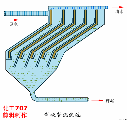 斜板管沉淀池 ?這種沉淀池利用了層流原理,提高了沉淀池的處理能力,過(guò)流率可達(dá)36m3/(m2.h),比一般沉淀池的處理能力高出7-10倍,是一種新型高效沉淀設(shè)備。