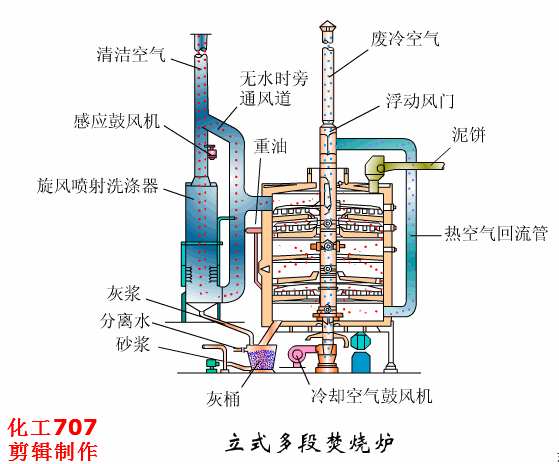 立式多段焚燒爐 ?多段立式焚燒爐結(jié)構(gòu)緊湊,操作彈性大,適用于各種污泥的焚燒處理。多段爐的污泥自上而下進(jìn)行干燥和焚燒,焚燒后的氣體在爐內(nèi)上升,在頂部與處于干燥階段的含水率為65%一75%的泥餅?zāi)嫦蚪佑|,對(duì)氣體起到一定脫臭作用。