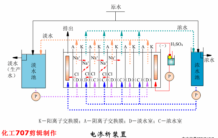 電滲析裝置 ?電滲析法是利用電場(chǎng)的作用,強(qiáng)行將離子向電極處吸引,致使電極中間部位的離子濃度大為下降,從而制得淡水的一種方法。一般情況下水中離子都可以自由通過(guò)交換膜,除非人工合成的大分子離子。