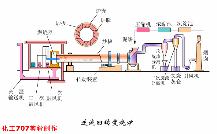 逆流回轉(zhuǎn)焚燒爐 ?回轉(zhuǎn)式焚燒爐是用冷卻水管或耐火材料沿爐體排列,爐體水平放置并略為傾斜。通過(guò)爐身的不停運(yùn)轉(zhuǎn),使?fàn)t體內(nèi)的垃圾充分燃燒,同時(shí)向爐體傾斜的方向移動(dòng),直至燃盡并排出爐體。