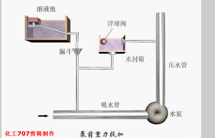 泵前重力投加 ?泵前重力投加是利用水泵葉輪的高速轉(zhuǎn)動(dòng),使混凝劑迅速地分散到原水中。這種方法安全可靠,節(jié)省混凝劑,一般適用于取水泵距水廠較近者。