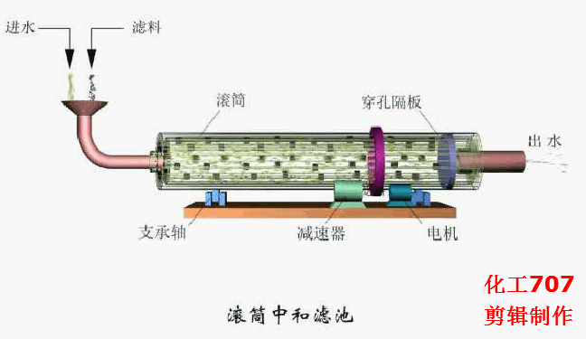 滾筒中和濾池 ?中和濾池分為普通中和濾池、升流式膨脹中和濾池和滾筒中和濾池。 過(guò)濾中和法僅用于酸性廢水的中和處理。酸性廢水流經(jīng)堿性濾料時(shí)與濾料進(jìn)行中和反應(yīng)的方法稱(chēng)為過(guò)濾中和法。堿性濾料主要有石灰石、大理石、白云石等。