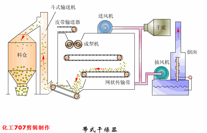 帶式干燥器 ?連續(xù)式常壓干燥器的一種。主要用于干燥小塊或纖維質(zhì)物料,如煤、肥皂、羊毛、棉花和其他纖維等。