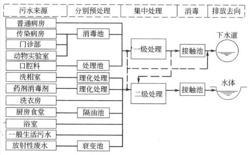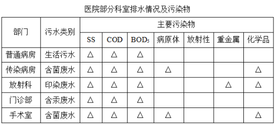 關于醫(yī)院污水的處理,這樣的技術可行嗎?發(fā)表時間:2016-08-07 23:43 醫(yī)院污水指醫(yī)院門診、病房、手術室、各類檢驗室、病理解剖室、放射室、洗衣房、太平間等處排出的診療、生活及糞便污水。當辦公、食堂、宿舍等排水與上述污水混合排出時亦視為醫(yī)院污水。 醫(yī)院污水含有大量致病微生物,具有傳染性等危害,一般來說污水中含菌總量達1億個/mL以上。其中致病微生物在環(huán)境中具有較強的抵抗力,當人們食用或接觸被細菌、病毒、寄生蟲卵或有毒、有害物質污染的水或食物時,易引起傳染病。 1醫(yī)院污水類別(1)生活污水:所占比重大,水質與普通生活污水相似。 (2)特殊廢水:包括實驗室、手術室、化驗室、解剖室、藥劑室排出的污水,含有重金屬、消毒劑、有機物質、酸、堿等有毒有害物質。 (3)放射性廢水:放射性診斷、治療及試驗研究過程中排放的含有放射性同位素的廢水。 醫(yī)院部分科室排水情況及污染物 2醫(yī)院廢水水量水質特點每日排放量與醫(yī)院規(guī)模、性質、醫(yī)院設施情況、醫(yī)療內容、住院與門診人數(shù)、地域、季節(jié)等因素密切相關。城鎮(zhèn)醫(yī)院耗水量一般平均1000L/(床?d)左右,郊區(qū)和縣城醫(yī)院通常700L/(床?d)左右。設計進水水質可參照《醫(yī)院污水處理工程技術規(guī)范》HJ2029—2013。 醫(yī)院污水設計進水水質參考表