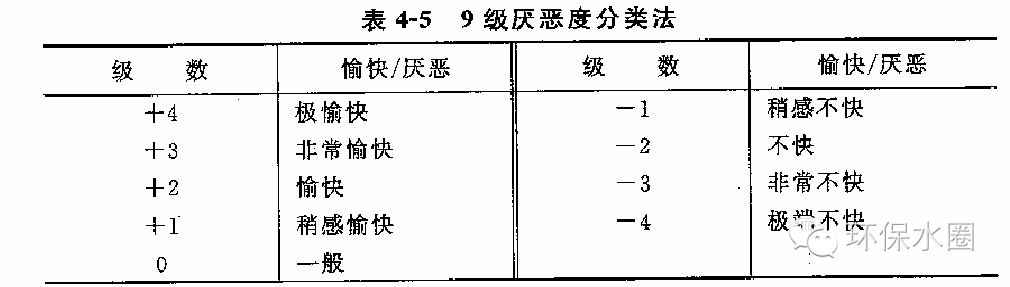 (5)惡臭厭惡度,即表4-4,愉快一厭惡9級法,即表4-5,
