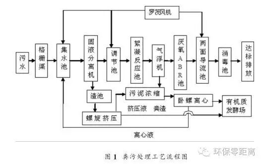 1 糞污的處理工藝流程及設(shè)備設(shè)施說明