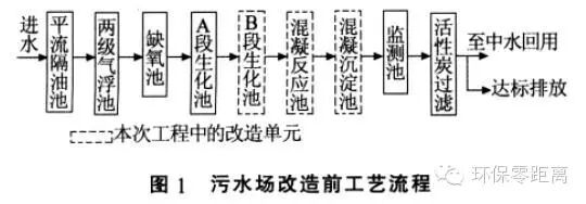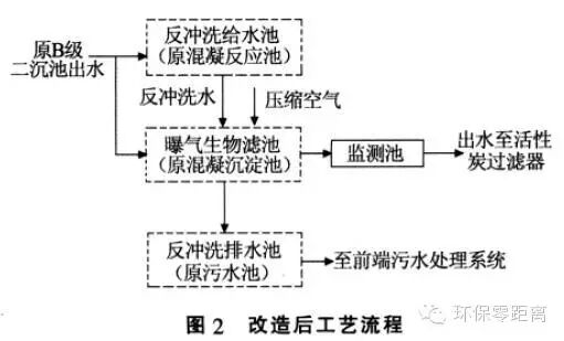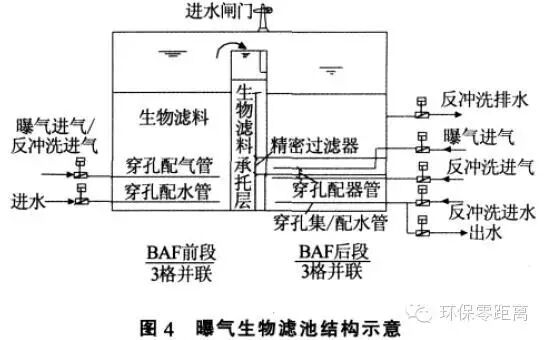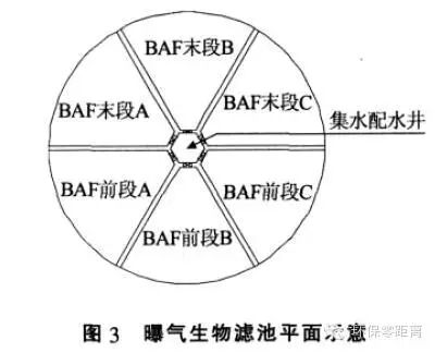 曝氣生物濾池工藝在煉油廢水深度處理中應用發(fā)表時間:2017-07-13 10:36 中石化某分公司為提高污水處理場出水水質(zhì)的穩(wěn)定性和尾水排放的達標率, 開展了污水處理場改造工程?通過對污水場現(xiàn)有運行情況及工藝流程的分析, 該改造工程將現(xiàn)有的2座D=16 m 混凝沉淀池改造為曝氣生物濾池。筆者就改造工程的工藝流程設計?工藝運行效果等情況進行介紹? 1 污水場改造前工藝流程及運行情況 中石化濟南分公司污水處理場自建成投用至今已有近20 a, 該污水處理場包括含油污水和鹽污水2 套污水處理系統(tǒng),總設計規(guī)模為500 m3/h?改造前這2 套處理系統(tǒng)的工藝流程見圖1? 該公司生產(chǎn)未實現(xiàn)污污分流,含油污水?含鹽污水及廠區(qū)生活污水混合后進入現(xiàn)有的2 套污水處理系統(tǒng),實際處理量200~450 m3/h?改造前,2 套污水處理系統(tǒng)的B 段生化池出水COD 為90~160 mg/L,活性炭過濾器出水COD 為40~70 mg/L,按《山東省小清河流域水污染物綜合排放標準》(DB 371656—2006)(出水COD<60 mg/L)考核,COD 達標排放率80%?同時,B 段生化池飄泥現(xiàn)象嚴重,再加上后續(xù)的混凝沉淀設備陳舊,沉淀效果較差,而活性炭過濾器設計負荷偏大,造成活性炭過濾器清洗頻率較高,人工操作強度大? 為提高污水達標排放率以滿足當?shù)丨h(huán)保局對其達標排放率>99.5%的要求, 本污水場于2009 年開展了污水處理場改造工程? 2 工藝流程設計 2.1 工藝流程 為不影響污水場的正常生產(chǎn),本改造工程通過對污水場現(xiàn)有工藝流程和運行情況的認真分析,在原有工藝流程的基礎(chǔ)上,將原混凝沉淀池改為曝氣生物濾池,并對曝氣生物濾池的結(jié)構(gòu)形式和濾料級配進行優(yōu)化設計,充分發(fā)揮其生物反應功能和過濾功能,實現(xiàn)COD?懸浮物等污染物質(zhì)的去除?鑒于場地緊張,本工程的工藝流程設計全部利用已有構(gòu)筑物,設備亦盡可能利舊?改造后的工藝流程見圖2? 原污水場B 級沉淀池出水經(jīng)曝氣生物濾池處理后進入監(jiān)測池,然后再通過泵提升至活性炭過濾器?受現(xiàn)場場地限制,曝氣生物濾池反沖洗水采用B級沉淀池出水,根據(jù)現(xiàn)場條件將原混凝反應池改為反沖洗提升水池,同時,將原污泥池改為反沖洗排水池;曝氣生物濾池所需的壓縮空氣來自于現(xiàn)有污水場的鼓風機? 2.2 設計規(guī)模及進?出水水質(zhì) 曝氣生物濾池設計水量500 m3/h, 主要考核指標為COD 和氨氮,COD 設計進?出水指標為100?60mg/L,氨氮設計進?出水指標為15?10 mg/L? 3 曝氣生物濾池的特點及主要設計參數(shù) 改造工程主體工藝為曝氣生物濾池工藝,該工藝無論是在平面布置上,還是在結(jié)構(gòu)形式上都具有明顯的特點? 污水經(jīng)常規(guī)的生化處理后,出水有機物濃度較低,可生化性較差?對于該類污水的深度處理,曝氣生物濾池工藝以其生物量豐富?處理效果好?運行穩(wěn)定等特點而得到廣泛的應用?但因廢水的COD 較低,微生物處于貧營養(yǎng)狀態(tài),在生物濾料表面難以形成凝聚性能良好的生物膜(生物膜很薄,肉眼幾乎難以分辨),同時受充氧曝氣的影響,因此曝氣生物濾池的過濾功能很弱,主要表現(xiàn)為進?出水的懸浮物濃度相差不大,濾池過濾周期長?因此,在低濃度污水的深度處理中,為彌補曝氣生物濾池對懸浮物的去除,在出水水質(zhì)要求比較嚴格的場合,曝氣生物濾池之后需銜接沉淀?過濾等工藝? 受現(xiàn)場條件的限制,為不影響污水場的正常生產(chǎn), 在改造工程中將2 座D=16 m 的混凝沉淀池改造為2 座并聯(lián)運行的曝氣生物濾池,每座的設計流量250 m3/h?每座曝氣生物濾池采用兩段串聯(lián)組合工藝,前段設置輕質(zhì)生物陶粒濾料,以生化功能為主;后段設置生物陶粒,并在生物陶粒下面設置精密過濾層,以過濾功能為主?該兩級串聯(lián)式曝氣生物濾池不僅生化功能穩(wěn)定,而且具有卓越的過濾效果?改造后的曝氣生物濾池平面示意和結(jié)構(gòu)示意見圖3?圖4? 在現(xiàn)有混凝沉淀池結(jié)構(gòu)基礎(chǔ)上,通過內(nèi)部增設隔墻將其平均分隔為6 格,中間為集水配水井(如圖3 所示)?污水首先從下部通過穿孔配水管進入曝氣生物濾池前段(3 格,并聯(lián)運行),前段設置輕質(zhì)生物陶粒,污水自下而上經(jīng)曝氣生物濾池前段生化處理后進入中間的集水配水井,然后再進入曝氣生物濾池后段(3 格,并聯(lián)運行),后段采用級配濾料,污水自上而下經(jīng)陶粒濾料?精密過濾層和承托層后,通過底部穿孔管出水? 曝氣生物濾池的前段以生化功能為主,主要技術(shù)參數(shù)及工藝特點如下: (1)3 格并聯(lián)運行,每格面積30 m2;填料以輕質(zhì)陶粒濾料為主,D 4~6 mm,厚度3 m,總有效接觸時間1.1 h;向上流速2.8 m/h? (2)采用向上流,在曝氣和水流作用下,濾料呈半流化狀態(tài),氣?液?固接觸充分?傳質(zhì)速率高,生化反應條件好,過濾功能可忽略不計,可實現(xiàn)連續(xù)長周期運行? (3)反沖洗采用間歇式氣反沖,即增大單格濾池的供氣量,利用流速較大的反向氣流將附著于濾料表面的污物擦洗下來使之懸浮于水中,然后隨向上的水流進入曝氣生物濾池的后段?氣反沖和充氧曝氣采用一套穿孔管配氣系統(tǒng), 埋設于濾料層底部?按實際工程運行經(jīng)驗, 反沖洗頻率一般3 天1 次?充氧曝氣氣水比3∶1,反沖洗氣沖強度20 L/(m2˙s)? 曝氣生物濾池的后